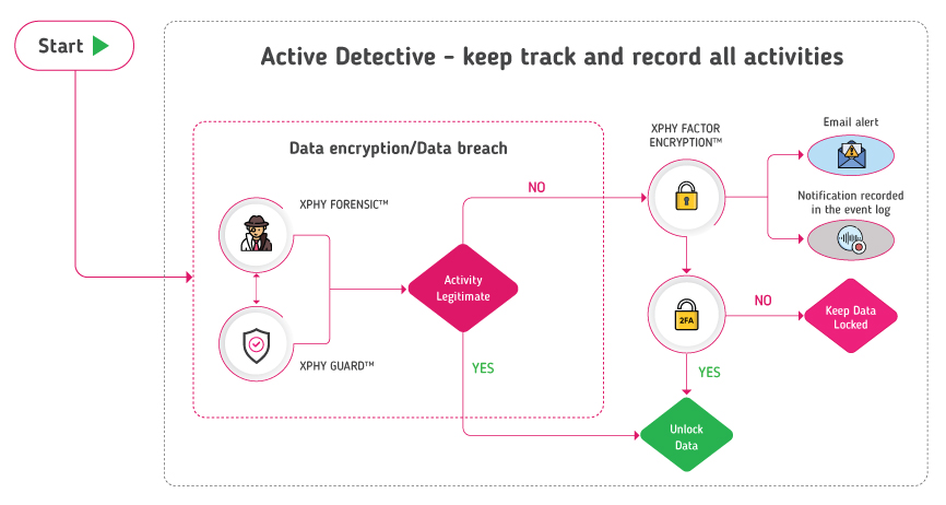 - XPHY FORENSICTM AGENT features ACTIVE DETECTIVE and DEEP INVESTIGATION introduce extra file protection features by preventing any illegal data modifications. They also record all activities and their application, making it easy for X-PHY® to identify suspicious actors.