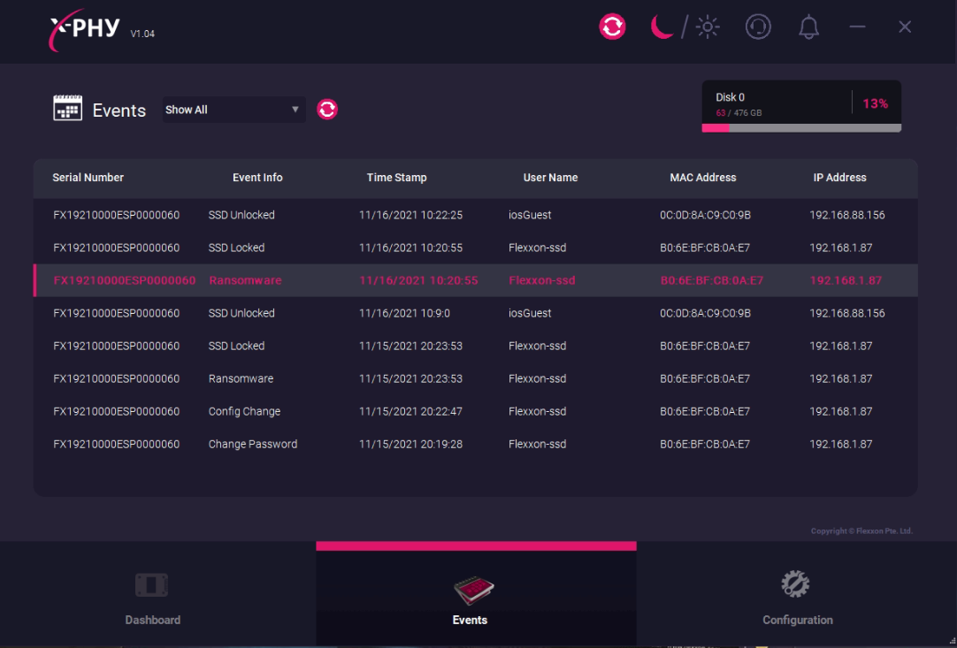 Flexxon tested the HelloKitty ransomware on a X-PHY® SSD and a normal SSD to see the responses. In less than 5 seconds, X-PHY® stopped the attack dead in its tracks, locked all data keeping it untouched, and immediately notified the user via email and OTP.