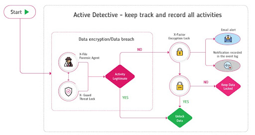 - X-GUARD THREAT LOCK features SECURITY SCOUT and GUARDIAN PRO-X work together to stop any attempt by the ransomware to breach or clone your sensitive data.