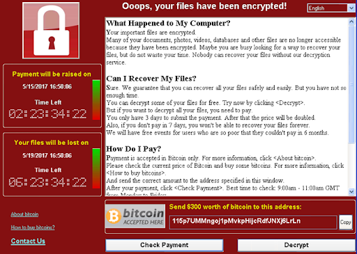 Sample screenshot of the WannaCry attack ransom payment procedure