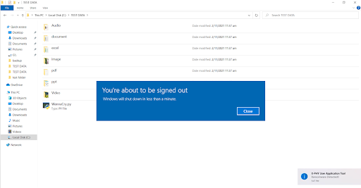 Within a few seconds, the X-PHY is able to detect the ransomware by recognising the ransomware behavior in the read and write pattern at firmware level. The X-PHY SSD locks and the laptop shutdowns immediately.